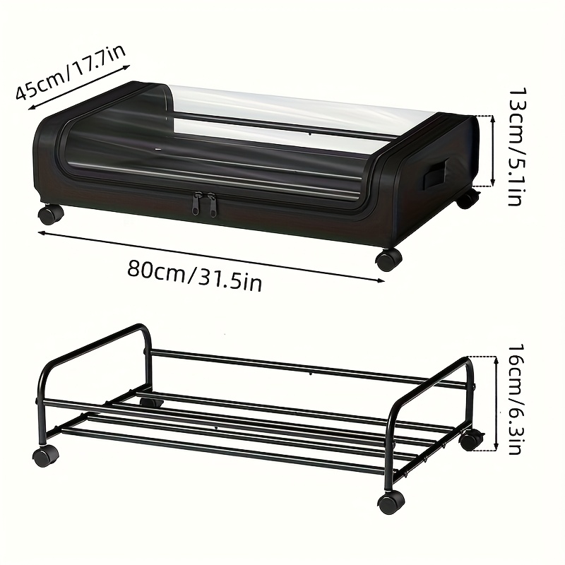 2pcs Under Bed Storage Organizer Metal Underbed Bins With Wheels And Lid Metal Underbed Storage Containers Under Bed Rolling Storage For Clothes, Bedding, Shoes, Blankets, Books, Toys, Under-Bed Storage