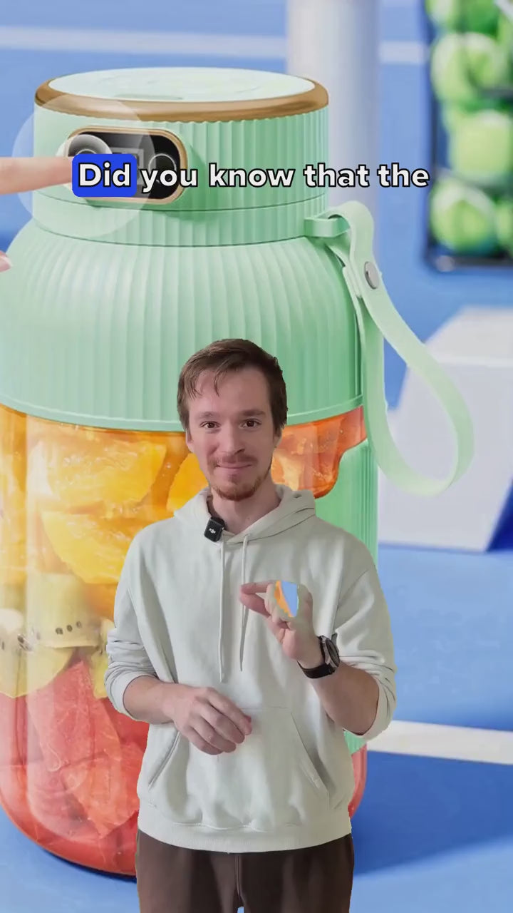 Blend fresh smoothies anywhere with this ultra-large portable juicer. Its high-capacity cup and dual lids make it ideal for home, gym, or travel use.